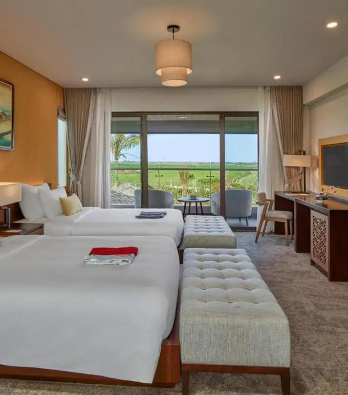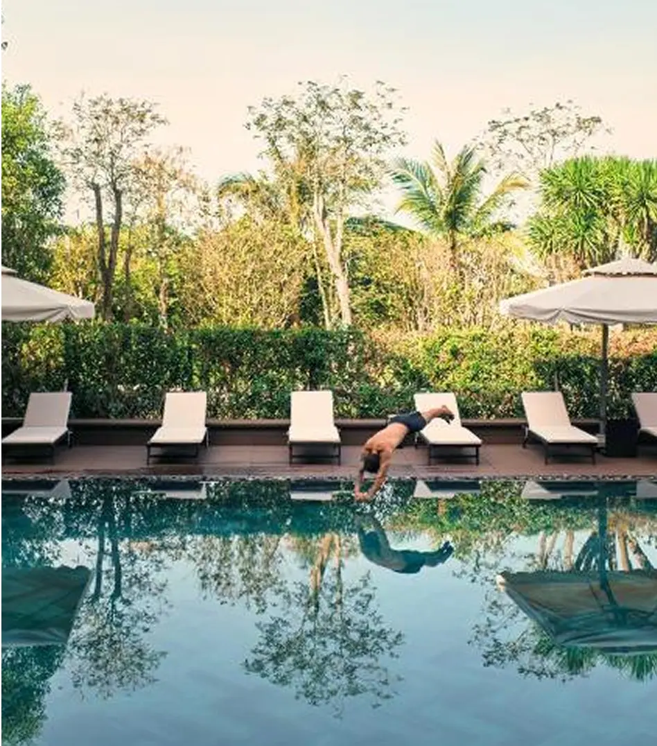 Проживание в уютном двухместном номере с трёхразовым питанием в формате шведского стола, включая вегетарианские блюда. Расслабление и восстановление в рамках традиционной программы массажа. На территории комплекса — бассейн, фитнес-зал, два ресторана, кинотеатр под открытым небом и велосипеды для неспешных прогулок по рисовым полям.
